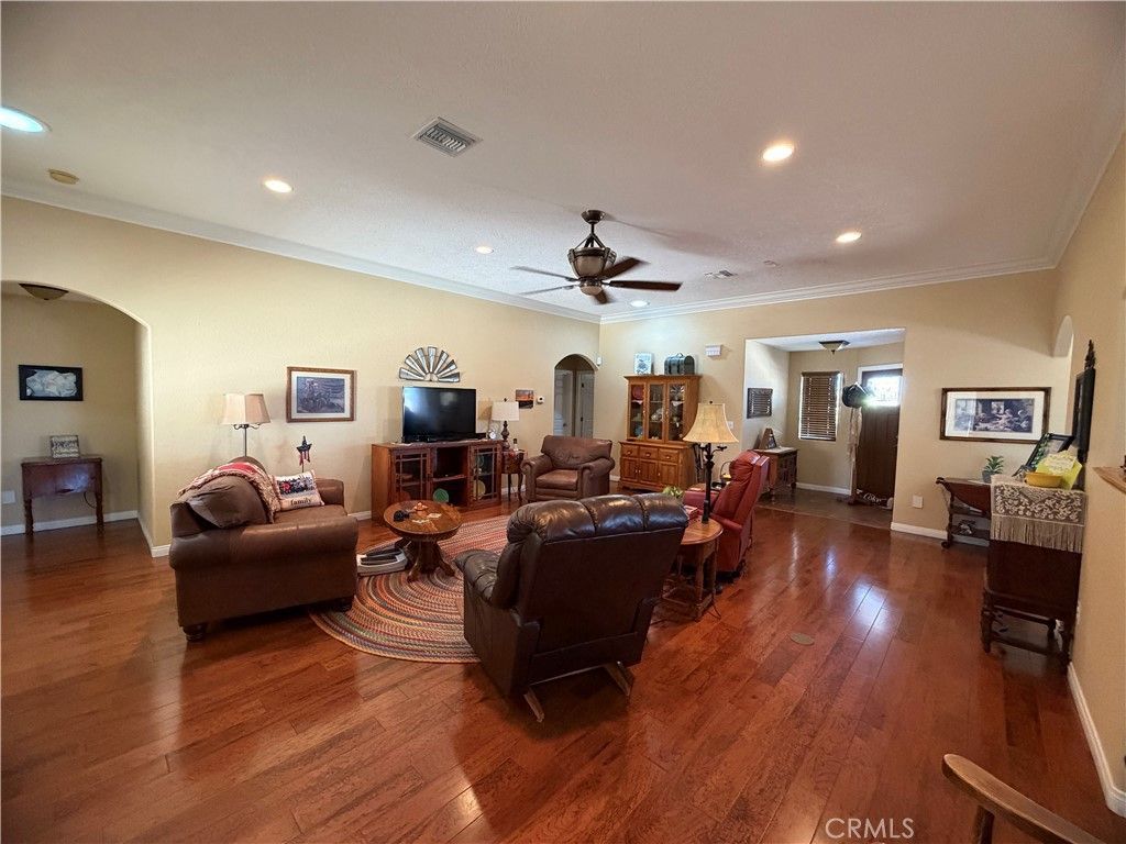 Welcome to this beautifully crafted custom-built 2008 home, offering 2,017 square feet of thoughtfully designed living space and ideally situated on a desirable corner lot! The front yard features attractive, low-maintenance landscaping with a blend of concrete and rock scaping, while a charming covered patio wraps around the front and extends along one side?perfect for relaxing and enjoying the outdoors. The oversized concrete driveway provides ample parking and leads to a spacious three-car garage. Inside, youll find a well-planned layout featuring a large kitchen with abundant cabinetry, distinctive green granite countertops, and a sunny breakfast nook surrounded by windows. The expansive living room is perfect for gatherings and showcases a fireplace that has never been used, ready for its first cozy night. This home offers three bedrooms, two full bathrooms, and a convenient half bath located near the garage entry. Just off the main living area, the oversized laundry room adds functionality and leads into the private primary suite. The primary bedroom features dual access from both the living room and laundry room, a walk-in closet, and a sliding glass door that opens to the backyard patio. The en-suite bathroom includes a large tiled walk-in shower for a spa-like feel. Throughout the main living areas, youll find beautiful real wood flooring, while the bedrooms offer comfortable carpeting. Step outside to a fully fenced backyard with a combination of block and wood fencing, providing excellent privacy. This unique home blends comfort, space, and thoughtful design?ready for its next owner to enjoy!