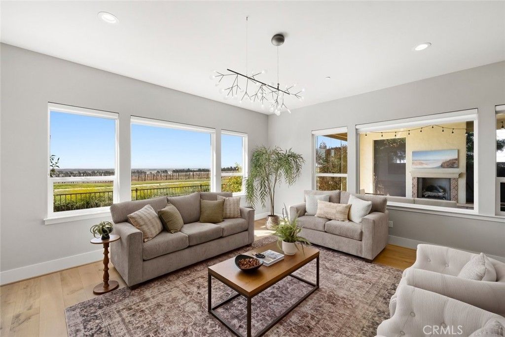Welcome to the Riviera, a stunning Estate home offering breathtaking views of the Pacific Ocean, sand dunes, vineyard and mountains: Impeccably designed for optimum daily living and stylish entertaining. This 3 bedroom, 3.5 bath, plus office home offers an abundance of upgrades - over $400,000 worth, on top of a $200,000 lot premium. Youll appreciate the gorgeous engineered wood flooring, plantation shutters, Silhouette shades with blackout option, and luxurious light fixtures throughout. Enter through a Dutch door into a private portico/courtyard with serene landscaping, tiered fountain, radiant ceiling heaters, multiple seating areas, plus a private entrance to the Casita. Step into the main home and youll discover a music room/office, plus culinary kitchen, spacious great room and dining space with abundant natural light and incredible open views. The kitchen features rich, soft-close Shaker style cabinetry, GE Profile appliances, including a gas cooktop with stainless hood, double wall oven, built-in refrigerator, white quartz island and countertops and tiled backsplash. Adjacent, is a supersized walk-in pantry and fully-customized Smart Space/laundry room. The outdoor space is equally amazing with a numerous fruit trees, raised garden beds, spectacular views, and the California Room, a screened and sliding glass enclosed 320 sq. ft. patio with radiant ceiling heaters, flagstone floors, fireplace with flagstone hearth and a secluded hot tub for sunset relaxation. At night, retire to the owners suite, an inviting well-appointed bedroom with a luxurious spa bath featuring a walk-in shower, separate dual sinks, soaking tub, walk-in closet with/dual-sided mirrored door and linen storage. The guest wing includes a powder room, 2nd bedroom with full en-suite bath, and the independent air conditioned Casita with bedroom/sitting area, full bath and walk-in closet. Additionally, theres a 3-car tandem garage with showroom epoxy floors, storage wall panels, custom cabinetry, and storage. High tech upgrades - LifeSource whole house water filtration system, additional owned solar panels, two owned Tesla power walls and an integrated security system with key-less entries. Youll never want to leave this meticulously designed home, but when you do, youll be part of the unique Trilogy experience with championship golf, pickleball, tennis, member-led clubs, exclusive lifestyle activities, two award-winning restaurants, fitness center and Sandalwood Spa.