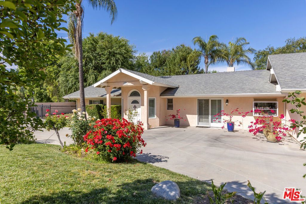 Nestled south of the boulevard on the boarder of Woodland Hills and Tarzana, 19717 Wells Dr presents a rare opportunity on a sprawling, flat half-acre corner lot. First time on the market in over 30 years, this single-story property is perfect for an end user looking to personalize with light updates or a developer seeking a premier lot in a coveted location. Inside, a thoughtfully designed floor plan offers multiple living and entertaining spaces. The entry opens to a formal living room with a fireplace and nearby powder room, flowing into the formal dining room. The dining area connects to the kitchen, complete with an eat-in area and built-in cabinetry for everyday functionality. Just beyond, an oversized family room sits at the heart of the home, featuring a built-in bar, sunroom, and additional lounge area with a built-in entertainment center, all enhanced by natural light and generous space for gathering and entertaining. Past the family room is a fully permitted addition that forms its own private wing. Filled with natural light, this versatile, open space currently functions as a complete office suite, including two additional rooms used as a break room and conference room. At the back of this wing is an additional oversized bedroom with an en-suite bathroom and sliding glass doors providing direct outdoor access, making it ideal for guests, extended family, or a live-work setup. On the opposite side of the home are the main sleeping quarters, featuring 3 secondary bedrooms, a full hallway bathroom, and the spacious primary suite with its own en-suite bathroom. Outside, the backyard offers endless possibilities and exceptional amenities. Highlights include a detached pool house with a full bathroom and bar, pool and spa, full outdoor kitchen, half basketball court, putting green, and expansive flat lawn space - perfect for entertaining, recreation, or future expansion. With its rare half-acre flat lot, single-story layout, corner positioning, and flexible living spaces, this property presents a unique opportunity to create a dream estate.